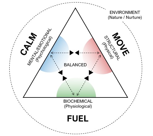 At the core of a Kinesiologist’s belief system lies the Triangle of Health: